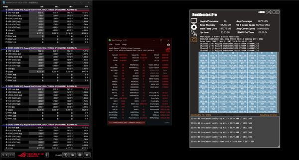 在ROG STIRX X870-A GAMING WIFI主板、锐龙7 9700X平台上,两款内存都顺利通过了稳定性测试。