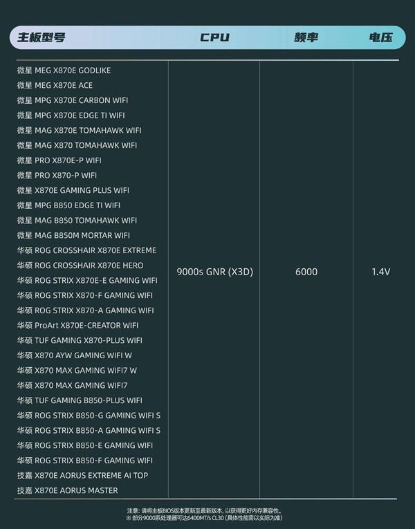 阿斯加特称,新内存重点针对AMD锐龙9000处理器做了优化适配,包括X3D系列,已在华硕、微星、技嘉的多款X870E、B850主板上通过了验证。