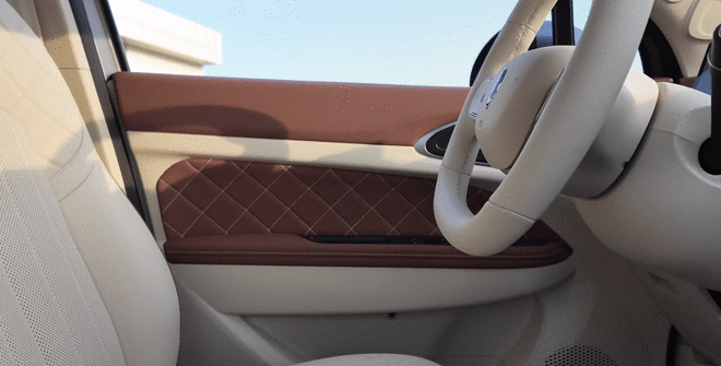 车内座椅采用皮质材料包覆,肩部区域带有菱形缝线,身体接触位置运用了打孔工艺,车门板也采用了与座椅相同样式的菱形缝线,整体内饰质感得到了显著提升。