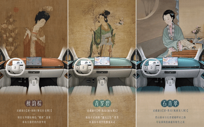 内饰方面,2025款欧拉好猫提供石青翠、檀韵棕、青罗碧三套配色方案。