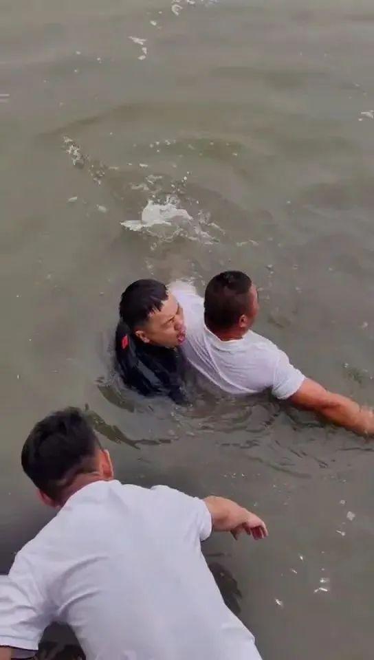 附近游玩的3名男子随即跳水救人