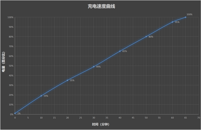 REDMI K Pad灭屏充电测试,10分钟电量从1%充至19%,半小时电量充至49%,最终完全充满耗时65分钟。