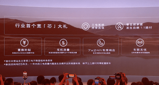 上市权益方面,包含1:1赔付的“零自燃”承诺,及三电终身质保等重磅回馈;叠加至高20,000元置换补贴、免费车机流量和车联服务等诚意好礼。