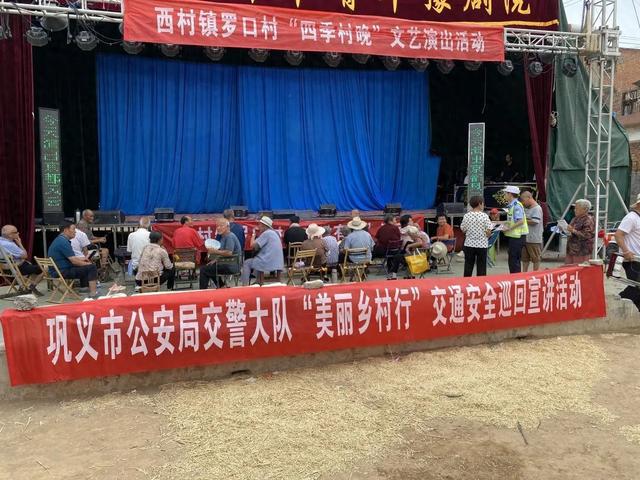 为进一步做好农村地区道路交通安全宣传教育工作,大力提升农村群众的交通安全意识。6月16日,巩义交警大队组织警力走进辖区西村镇罗口村,利用村内戏曲演出开展“美丽乡村行”交通安全巡回宣讲活动。