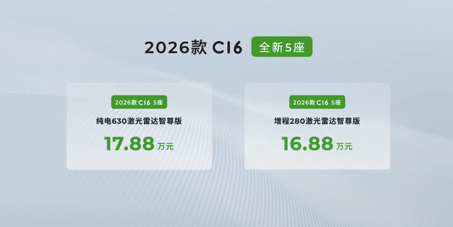 新增5座版/续航提升 26款零跑C16上市售15.18万起