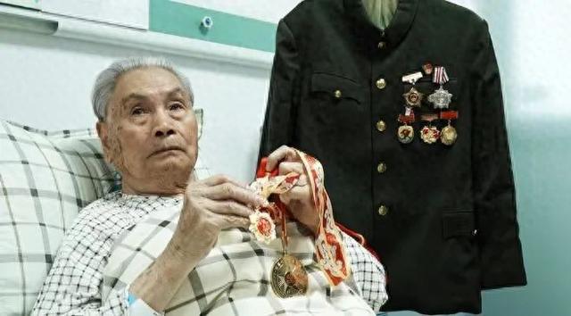 郑蔚在病房里翻看他的军功章。受访者供图