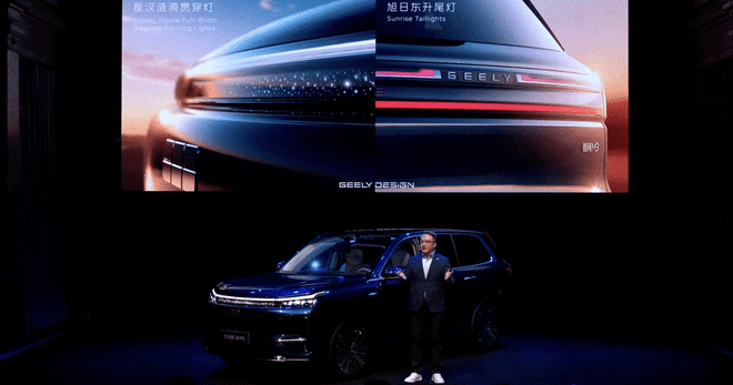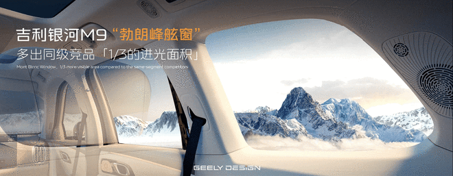 吉利银河M9的造型设计由中欧团队深度跨国合作打造,巧妙将中国设计和全球审美相融合。呈现出端正、大气的整车姿态,新车“以大为美”,1:1.2的窗身比,不仅和市面上过于运动的车身比例形成强烈对比,更照顾了车内视野。