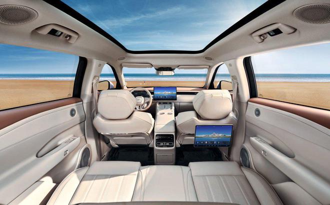 新车提供琥珀棕、深海蓝和极光紫三种全新方案,满足不同用户对家居风或科技风的喜好。15.6英寸2K悬浮中控屏,支持与AR-HUD、仪表、后排屏、冷暖箱控制屏实现五屏联动,并支持鸿蒙手机一键投屏及跨设备任务流转,音频、导航等信息可无缝同步至车机。后排MagLink拓展坞兼容多品牌平板电脑,实现独立观影与中控交互,为乘客带来丰富的娱乐体验。