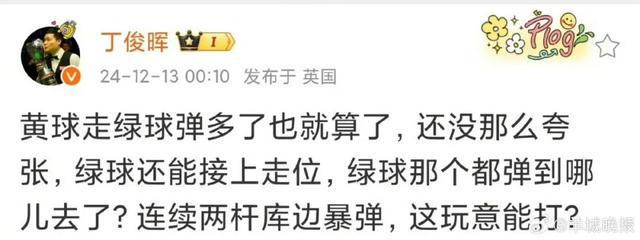 2024年苏格兰公开赛期间,丁俊晖以3比4负于卢卡·布雷塞尔后,在社交媒体平台上发表了两条批评比赛球台的言论。目前这两条微博均已被删除。