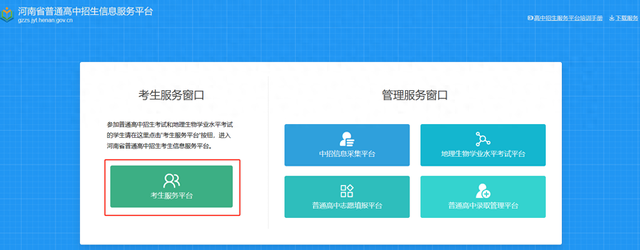 中考成绩查询入口:河南省普通高中招生考生服务平台
