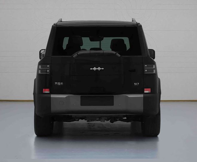 钛7延续了方程豹标志性的方正设计,前脸整体进行了一定升级,大灯采用双线条设计,搭配银色护板强化硬派风格。侧面线条平直,配备传统门把手,严寒暴雨适应性更强,此外还搭配了20英寸轮毂。车尾采用侧开式尾门+外挂储物箱,尾灯组呈双L型布局,夜间辨识度突出。其整备质量2257kg,提供235/50 R19、245/50 R19、255/40 R21三种轮胎规格,接近角/离去角分别为24/25度。尺寸方面,长宽高4999×1995×1865mm,轴距2920mm,5座布局,后排腿部空间大。