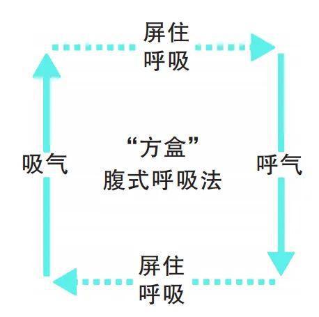 屏住呼吸,保持肺部清空,沿着方盒的下沿从右向左,慢慢从1数到4。重复上述步骤3次,或每次练习5分钟。