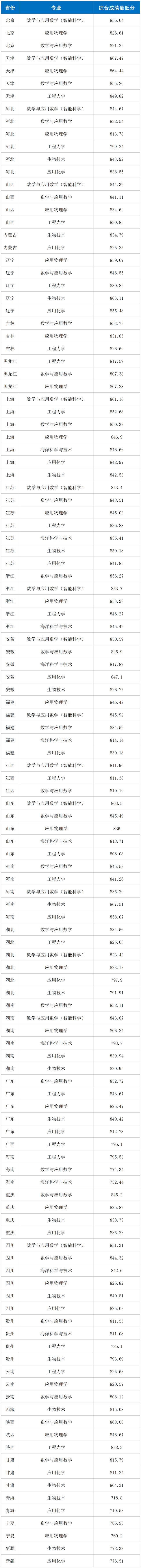 备注:若考生综合成绩相同,则依次按能力考核成绩、物理成绩、高考成绩、数学成绩、语文成绩、外语成绩、体育测试成绩排队(申请免体测考生体育测试成绩排序位于所有参加考试的考生最后)。