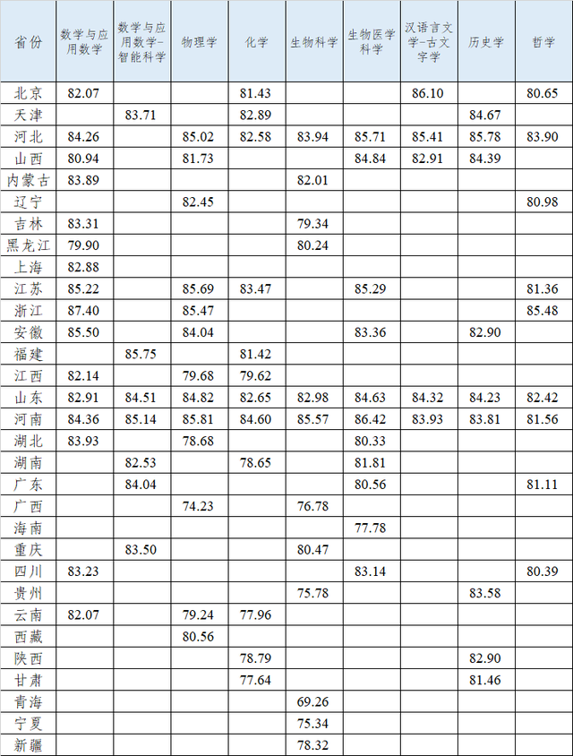 根据综合成绩计算公式,所有省份综合成绩满分均为800分。