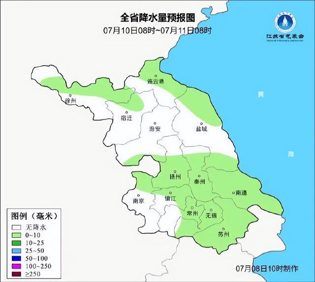 另据江苏气象消息,未来三天沿江及以北部分地区仍有高温天气。受今年第4号台风“丹娜丝”影响,8—9日淮河以南大部分地区有阵雨或雷雨,风力4—5级阵风6—7级。