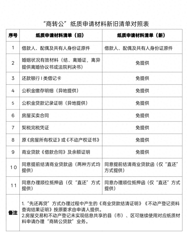 “商转公贷款”业务减免9项材料