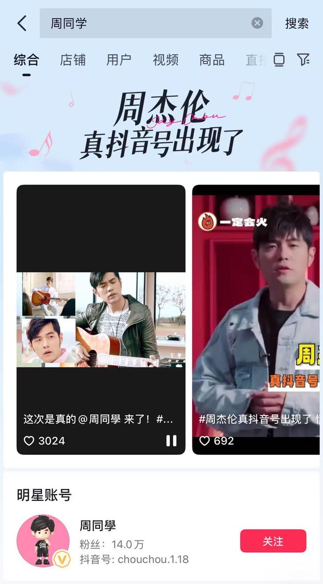 周杰伦确认入驻抖音 访客 2025-07-09 17:08:26 90011 抢沙发 默认 三言发现,在抖音上搜索周杰伦相关关键词,会显示“周杰伦真抖音号出现了”的界面,这是官方确认周杰伦入驻抖音。可以看到“周同学”显示为明星账号,认证为歌手,头像与周杰伦公布的官方二次元头像一致。目前已有18万粉丝。 标签: 周杰伦 头像 海报 阅读 QQ 分享 微博分享 微信分享 分享 上一篇海底捞门店回应服务员戴牌求打赏:系2021年旧闻,目前已经没有了 下一篇美的计划投入500亿元以上布局AI大模型 海底捞门店回应服务员戴牌求打赏:系2021年旧闻,目前已经没有了上一篇 美的计划投入500亿元以上布局AI大模型下一篇 相关推荐 周杰伦头像 微信通知头像显示功能,iOS专属还是安卓早有?揭秘真相! 2026-01-13 周杰伦与魔术师蔡威泽的加密币投资纠纷,涉及亿元投资的幕后真相揭秘 2025-10-23 周杰伦演唱会收官发文告别,自曝恐慌发作挑战舞台 2025-10-12 周杰伦库存满满,新歌即将发布 2025-09-23 周杰伦新专辑进展揭秘,多首歌曲已完成创作,调整演唱会安排以腾出时间录音 2025-09-22 周杰伦武汉演唱会,抢票时间定了! 2025-07-25 巨星传奇股价三日连涨 周杰伦:周游记第四季继续好好拍 2025-07-21 周杰伦快手账号简介删除全网唯一 2025-07-13 发表评论取消回复 快捷回复: 评论列表 (暂无评论,90011人围观)参与讨论 还没有评论,来说两句吧...