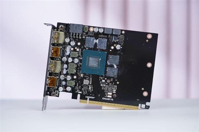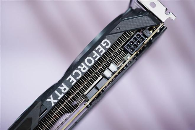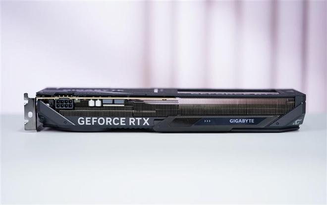 技嘉RTX 5050 GAMING OC显卡顶部留出了巨大的散热出风通道,8P供电接口设计在靠近挡板一侧,比较少见,对机箱背线出口设计有一定要求。