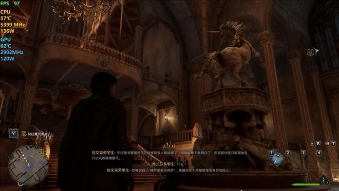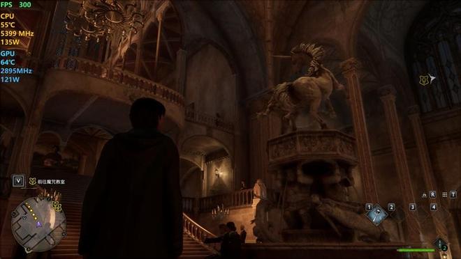 在《霍格沃兹之遗》中,使用超高画质预设,DLSS超分辨率设置为平衡,记录游戏帧数。