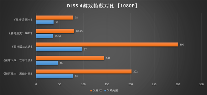 《霍格沃兹之遗》在开启DLSS 4最高的4X级别多帧生成时,1080P分辨率下测试帧率为300。