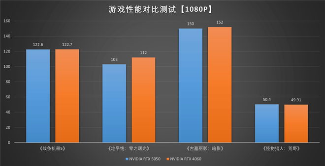 在不支持DLSS 4的游戏测试中,技嘉RTX 5050 GAMING OC显卡的性能也和RTX 4060几乎差别,在更老的游戏上略显不足,在较新的《怪物猎人:荒野》中反略有优势。