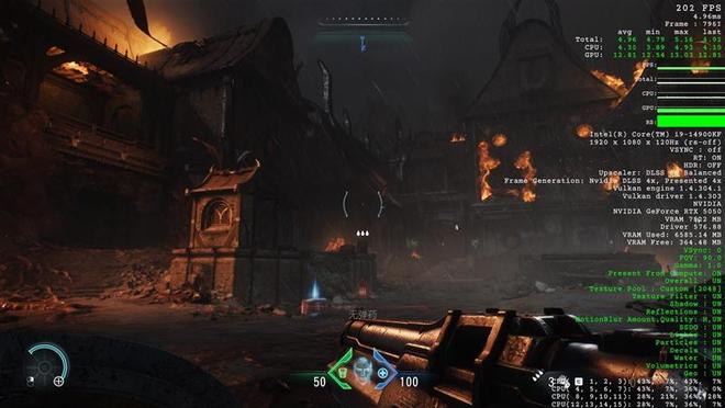 而《霍格沃兹之遗》这样性能要求更低的游戏,甚至能跑到300帧的水平,玩家完全可以尝试使用更高的分辨率,甚至在最新的《毁灭战士:黑暗时代》,只要不打开最吃资源的路径追踪,1080P一样可以跑到200帧,极为流畅。