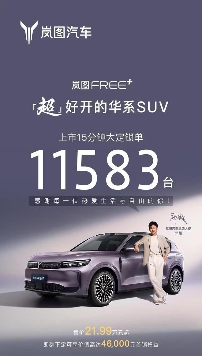 据悉,上市15分钟,岚图FREE+大定锁单11583台。