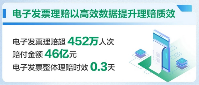此外,该公司推出医疗电子发票在理赔环节的应用,实现电子发票变数据,理赔服务从被动变主动。2025年上半年电子发票理赔超452万人次,赔付金额46亿元,整体赔付时效仅0.3天。
