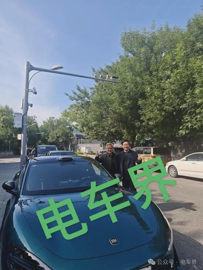 黄仁勋和雷军在小米SU7旁合影
