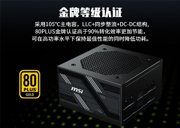 新款电源还采用高品质105°C主电容和高效的LLC谐振+同步整流+DC-D电路结构,通过80 PLUS金牌认证,典型负载下转换效率高达90%。