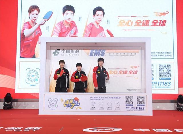活动上带有孙颖莎、王曼昱、王楚钦形象的EMS录取通知书最新封套发布,为2025年高考考生送上暖心祝福。