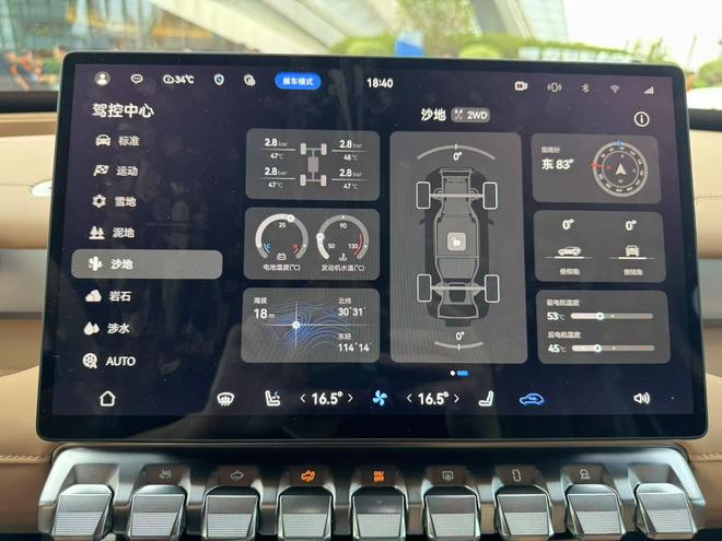 在科技感方面,新车配备了10.25英寸仪表、15.6英寸中控屏、W-HUD抬头显示、内流媒体后视镜、后排控制屏,满足多向交互。该车还配备运动腕表式旋钮屏,表盘屏显有多风格选择,支持雪地/岩石/涉水等6种越野模式切换。