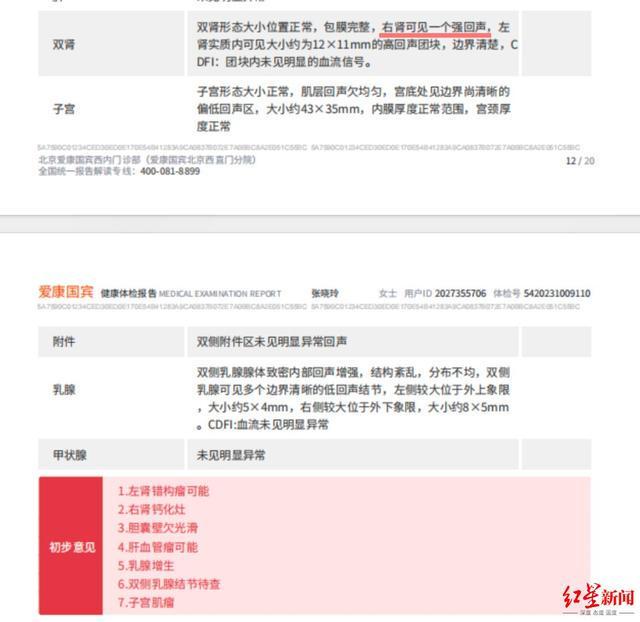 19日上午,当事律师张晓玲告诉红星新闻记者,自己不认可爱康国宾的声明。她认为2023年钙化灶的诊断就是误诊,当时检查就提到“右肾可见一个强回声”,可能已经出现肿瘤,爱康国宾应该告知自己并建议进一步检查。后面检查中没有再发现钙化灶,也说明了当时诊断有错误。
