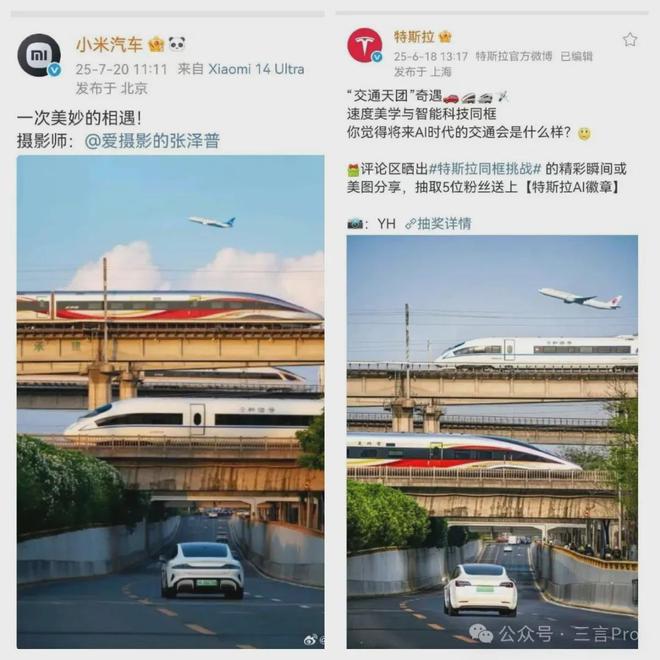日前,小米汽车官方转发了一张某摄影师拍摄的照片,但很快有网友指出其构图与特斯拉上个月发布的照片极为相似,引发讨论。