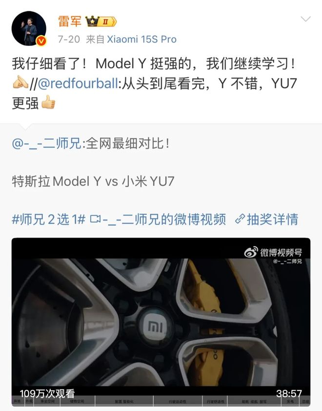前天,雷军看了特斯拉Model Y和小米YU7的对比视频后,直言要向特斯拉继续学习。![]()