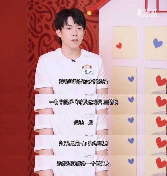 谈到未来退役的话题时,王楚钦说:“我希望能留给大家的是一名中国乒乓球队运动员王楚钦,如果我脱离了赛场,希望能做一个普通人。”