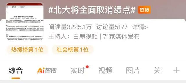 随后,话题#北大将全面取消绩点#,冲上热搜第一!