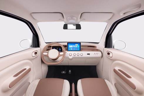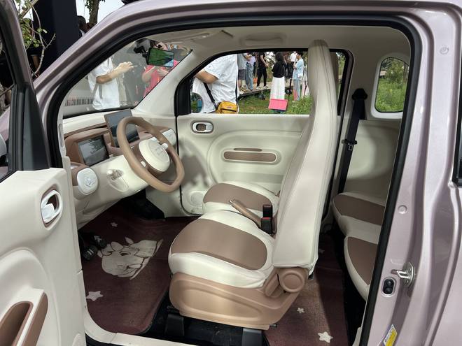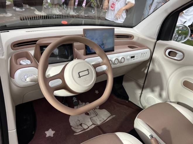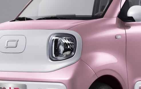 外观方面,新车新增粉色车漆,整体造型方正可爱,延续了现款车型的萌趣设计风格,前脸采用封闭式设计,前脸采用撞色格栅设计,搭配圆润Q的萌系电眼大灯,灵巧又时尚。