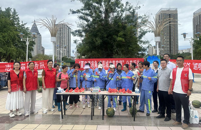 在提供清凉服务的同时,各支行结合自身特色开展暖心活动。济宁分行营业部在邀请劳动者避暑的同时,还现场讲解电信诈骗常见套路。高新区支行携手党建共建单位西闸社区,在新世纪广场开展“夏日清凉角 感恩城市美容师”公益活动,将切好的西瓜送到环卫工人手中。邹城支行聚焦外卖骑手群体,开展“清凉守护 致敬城市奔跑者”主题宣传,为他们送上实用伴手礼解暑。