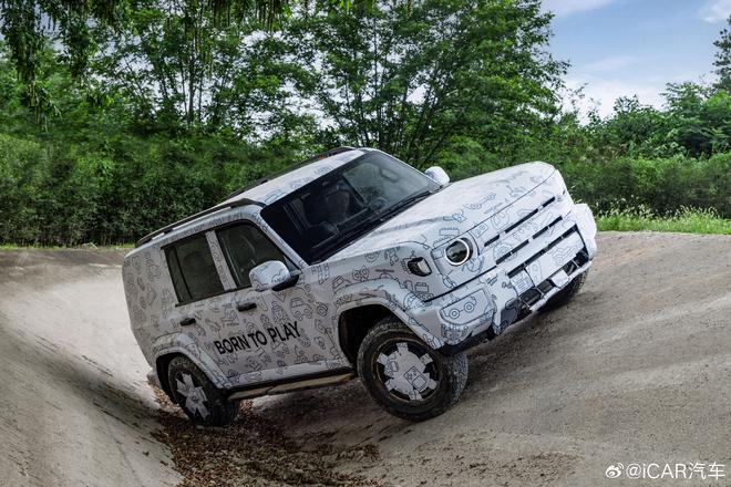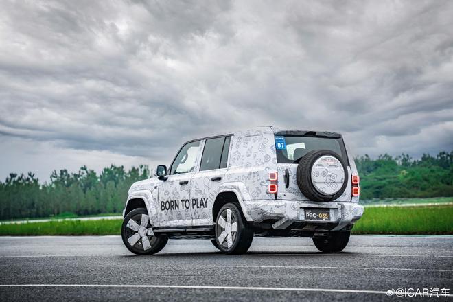 从伪装图初见iCAR V27端倪,尺寸和造型风格上靠拢路虎卫士(参数丨图片),iCAR V27大概率也是无大梁的承载式车身。