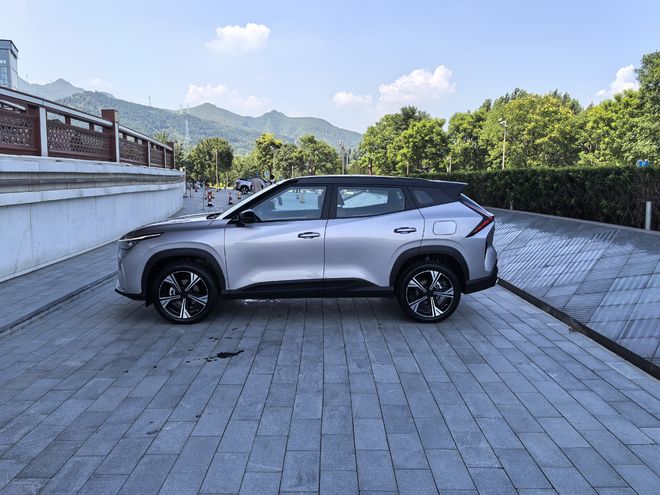 车身尺寸为4510×1865×1650mm,轴距2707mm(较前代微增6mm),为驾乘空间提供充足保障。采用“双腰线”设计:前低后高的上提腰线营造蓄势待发的运动感,悬浮式车顶进一步增强层次感。侧裙装饰条与车门线条融入徽派建筑“月梁”元素,细节处体现东方韵味。配备19英寸五辐式运动轮毂,强化运动属性。
