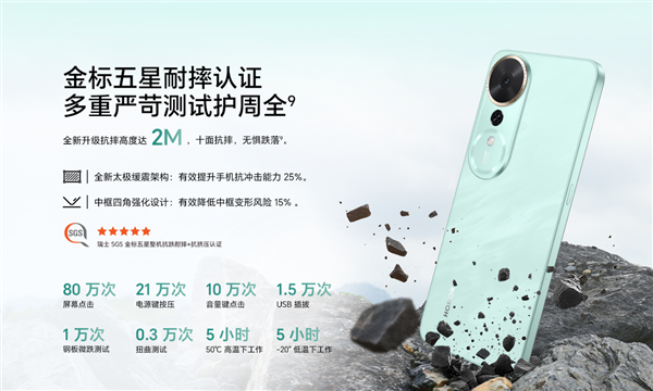 荣耀畅玩70 Plus拥有金标五星耐摔认证,抗摔高度达2米,全新太极缓震架构,有效提升手机抗冲击能力25%,中框四角强化设计,降低中框变形风险15%。