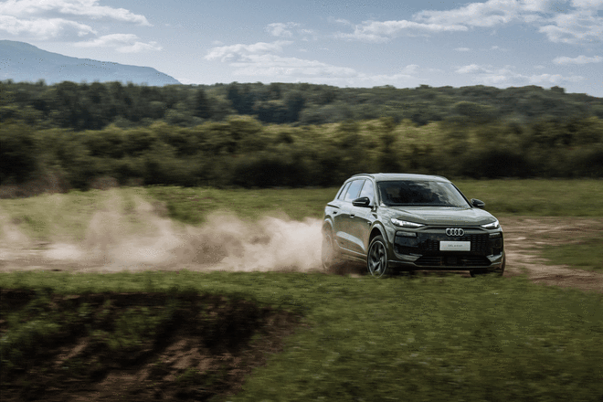 新车搭载的双电机四驱版综合功率285kW,零百加速5.9秒;e-quattro系统配合前窄后宽高性能轮胎(前255mm/后285mm),确保全路况抓地力。