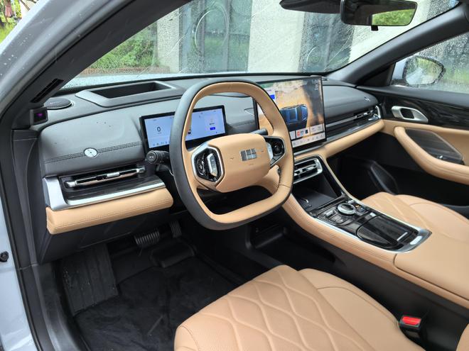 值得一提的是,新车内部依然是设计了诸多物理按键,目的也是让常用的功能变得触手可及,方便就好。在配色方面,新车内装提供霁雪白、秋韵棕、烟波灰3款内饰颜色可选,环保材质占比超80%,而座椅采用打孔真皮+菱形缝线工艺,功能上,座椅配有同级最多8种按摩模式,前排座位具备三级加热功能,仅需5分钟即可实现0-34℃的快速升温,而面对炎热夏季,也少不了座椅通风的功能,10分钟即可降低15℃。