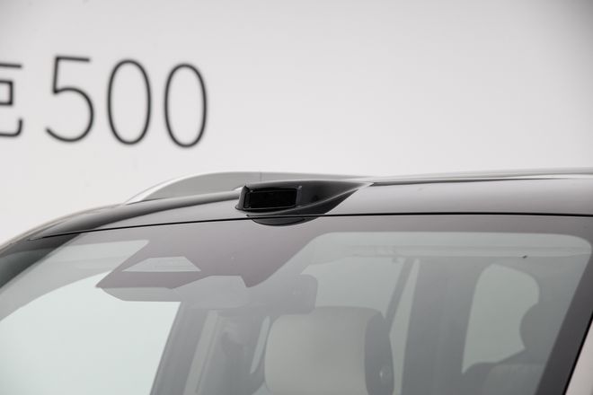 坦克500 Hi4-T/Hi4-Z的外观整体延续了现款车型的经典设计,硬朗的线条与方正的轮廓依旧散发着硬派SUV的气场。不过,车顶新增的激光雷达成为最显眼的变化。
