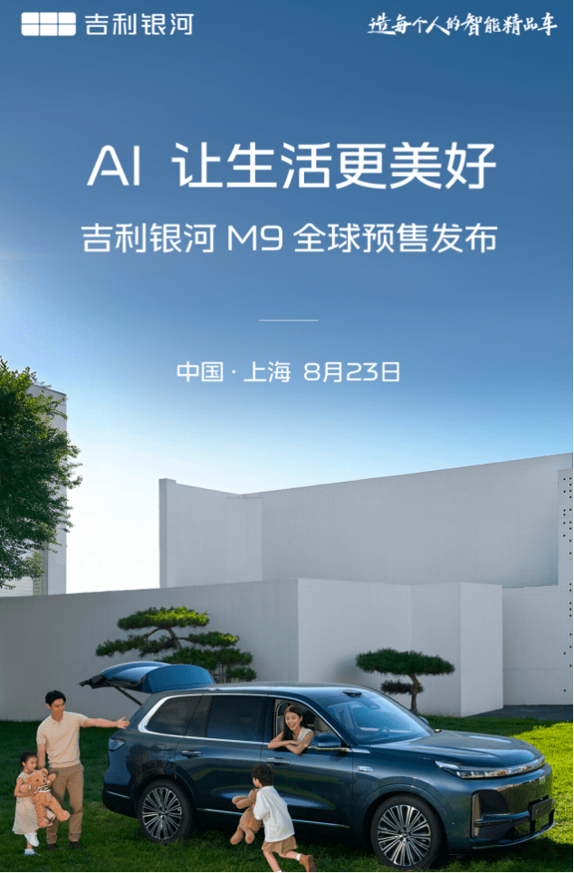 近日,吉利汽车官方宣布,吉利银河旗下全新“AI科技大六座旗舰SUV”——吉利银河M9将于8月23日正式开启预售。![]()