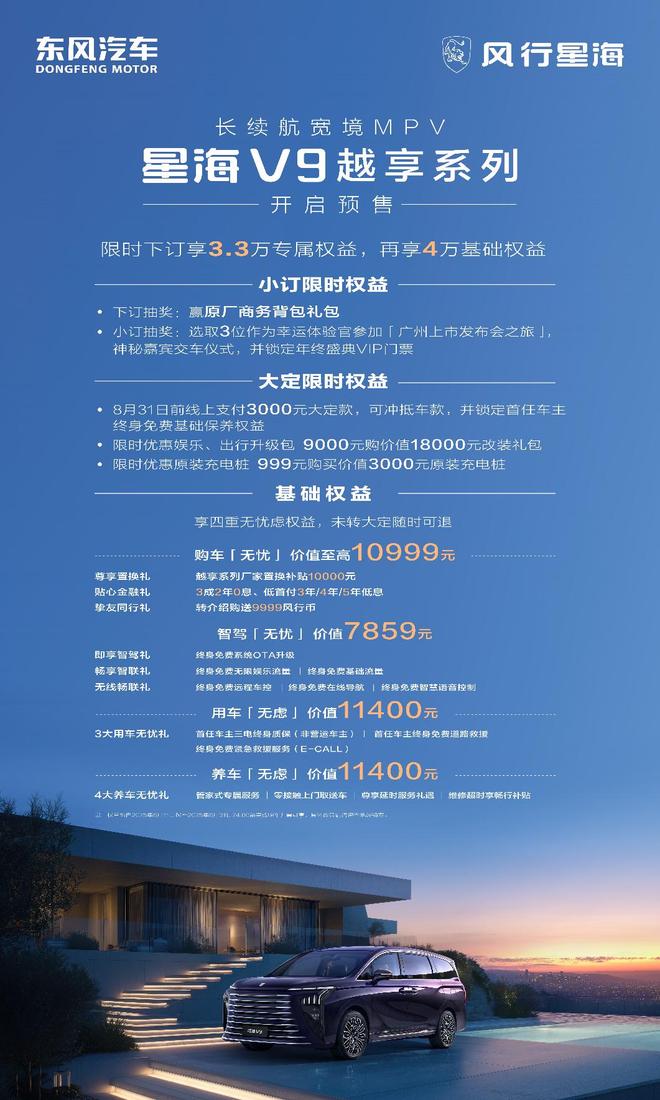星海V9越享系列不仅是一款车,更是东风风行对20万内燃油MPV市场的“变革宣言”,将改写中高端MPV市场的竞争规则,宣告新能源MPV豪华平权时代的正式到来,成为下半年最值得买的MPV车型。