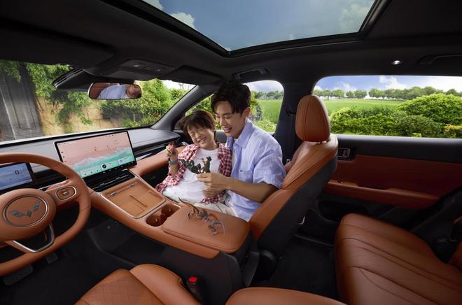 新车独创多元场景座椅模式,可一键切换「全家出行-五座满员」、「兴趣装载-后排单座放倒」、「三人轻户外-后排两座放倒」、「浪漫双人观景-后排三座全放倒,与前排连成大床房」模式,适配各种家庭生活场景。