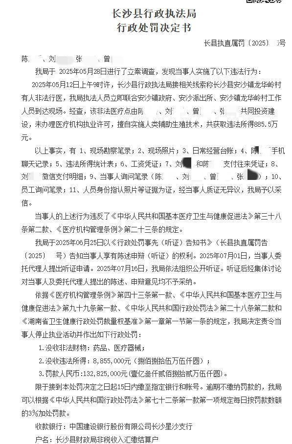 最高罚款1.3亿!长沙通报地下代孕机构行政处罚情况
