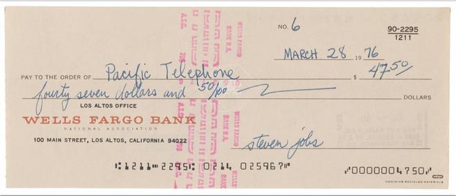 8月21日,RR Auction举办的“史蒂夫・乔布斯与苹果革命”专场拍卖收官。其中一张由苹果三位联合创始人乔布斯、沃兹尼亚克及罗纳德・韦恩签名的支票以87940美元成交。该支票于1976年3月28日由乔布斯填写并签署,票面金额仅为47.50美元,背面载有三位创始人全名及公司地址。